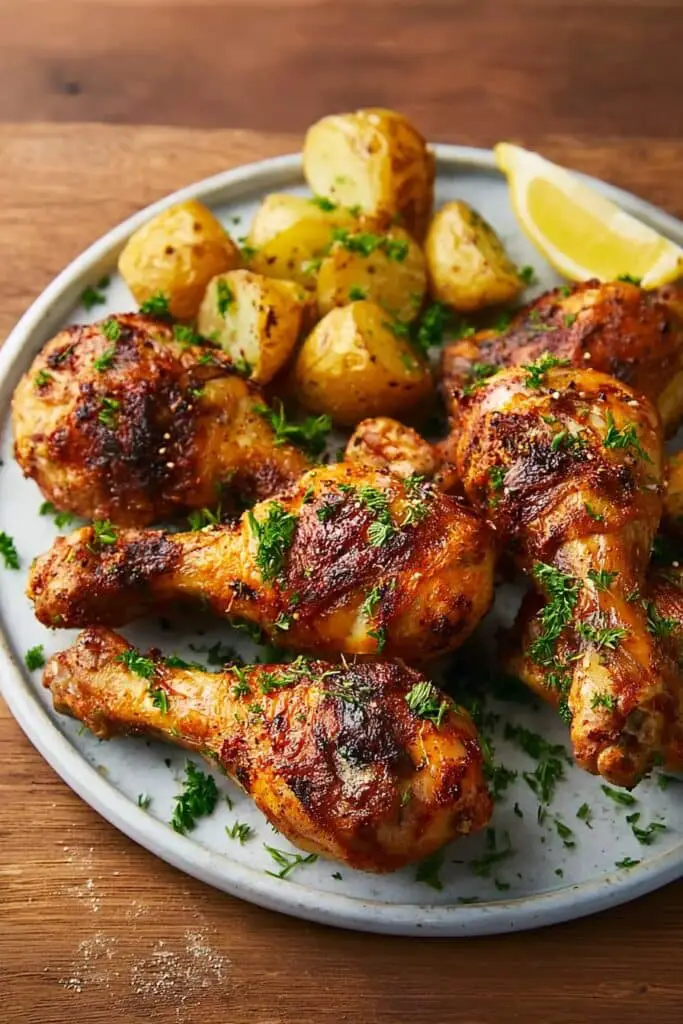 • Bake 25–30 minutes, flipping potatoes halfway through, until chicken reaches 165°F (74°C) and potatoes are golden brown.