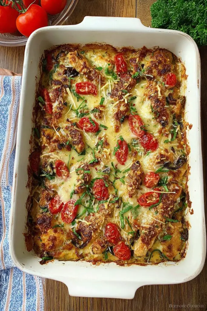 I have a soft spot for casseroles there’s something about one-dish meals that just feels effortless. This Baked Tuscan Chicken Casserole is one of my favorites for weeknight dinners or casual gatherings. It’s creamy, cheesy, packed with tender chicken Italian style, and loaded with all the Tuscan flavors I love sun-dried tomatoes, spinach, and garlic.
