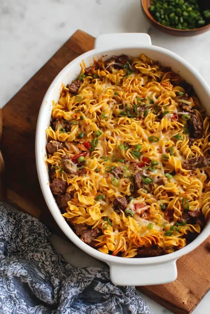 It’s creamy, cheesy, and feels like an old-fashioned casserole your family will ask for again and again. You can easily switch the cheese, add veggies, or swap in ground turkey but honestly, the classic mix of beef noodles and sauce is perfect as is.