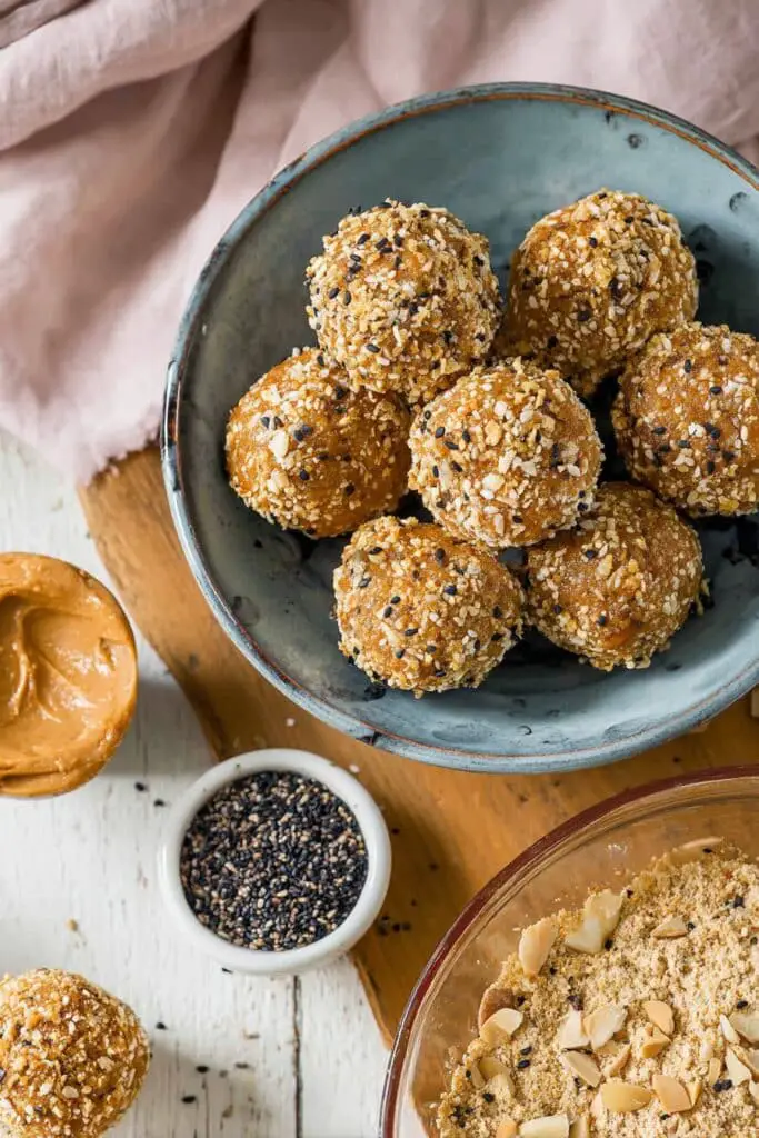 - Rolling the balls in sesame seeds adds texture and keeps them from sticking together.