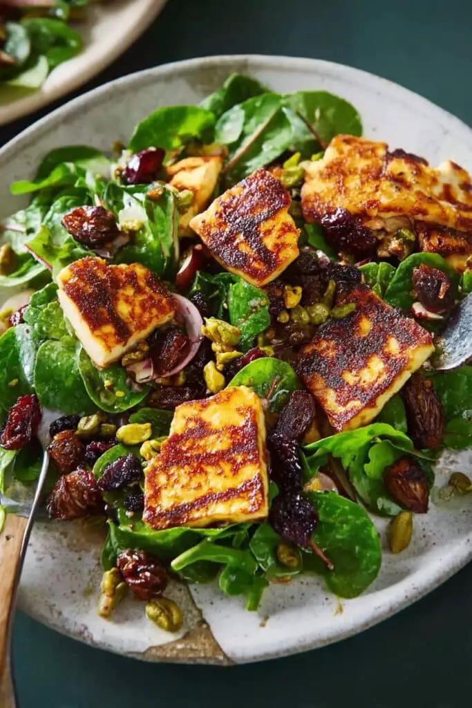 - Sweet dates + nutty pistachios + salty halloumi = flavor harmony