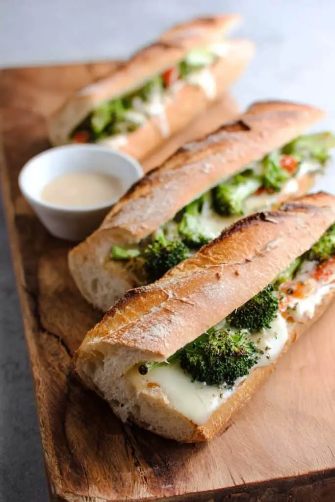 A small amount of mayonnaise or a spoonful of Greek yogurt, about ½ cup, can be mixed with garlic and seasoning to create a quick sandwich sauce. It adds richness and helps bind the broccoli filling. If you prefer a lighter option, plain yogurt or a light mayo works just fine.