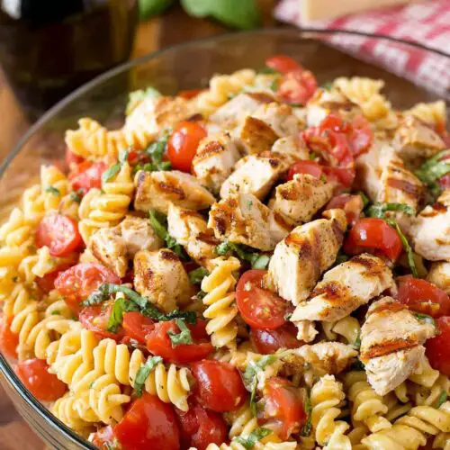 Grilled Chicken Bruschetta Pasta Salad