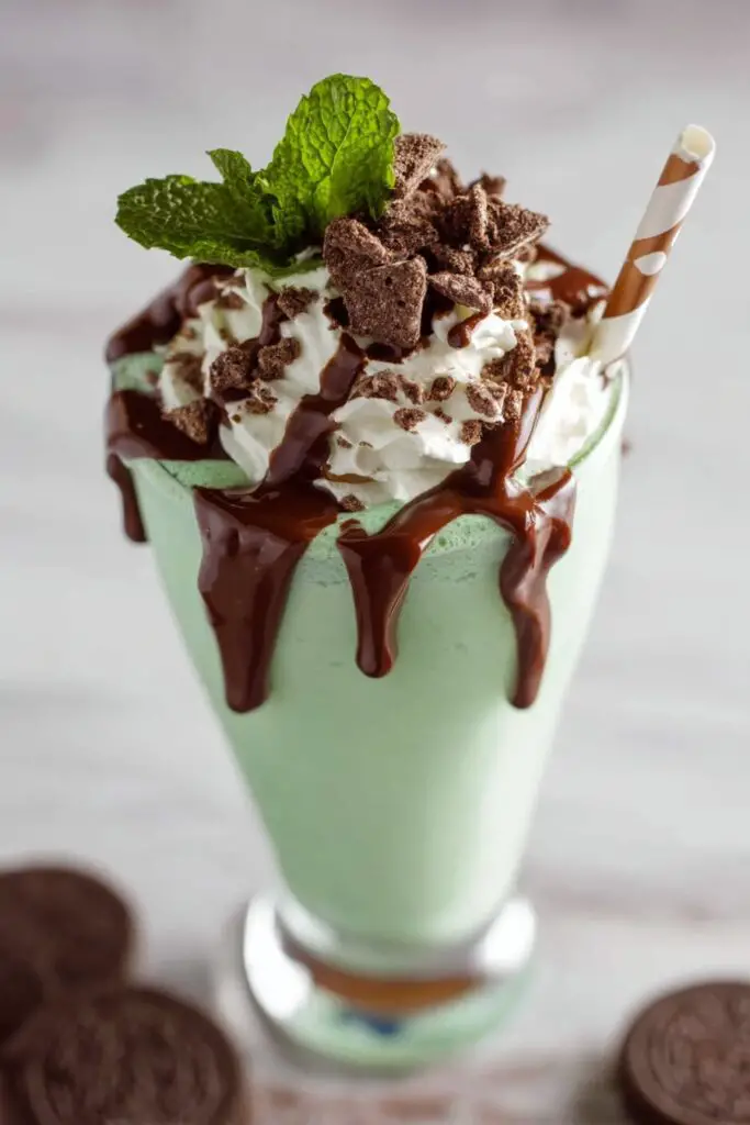 Pour the shake into glasses. Top with whipped cream, a drizzle of chocolate syrup, and a fresh mint leaf. Sprinkle chocolate chips or shaved chocolate if you want a little extra indulgence. - Enjoy Immediately