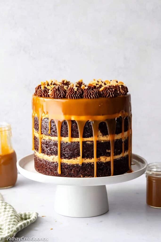 10. Chocolate Caramel Layer Cake (Sweet & Gooey)