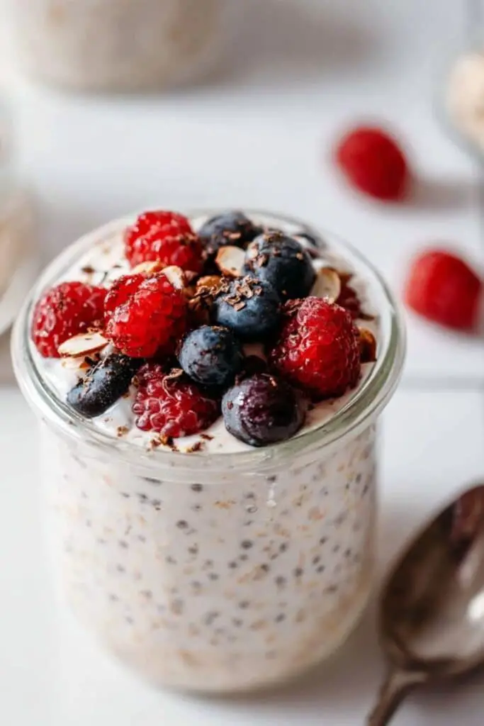 There’s no reheating required since they’re meant to be eaten cold. If you prefer them slightly warm, you can microwave the oats for about 30–40 seconds, stirring halfway through. Just avoid overheating, or the yogurt may separate.