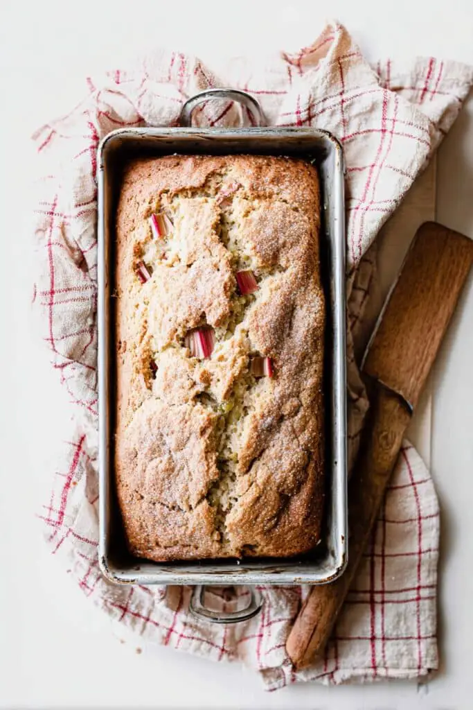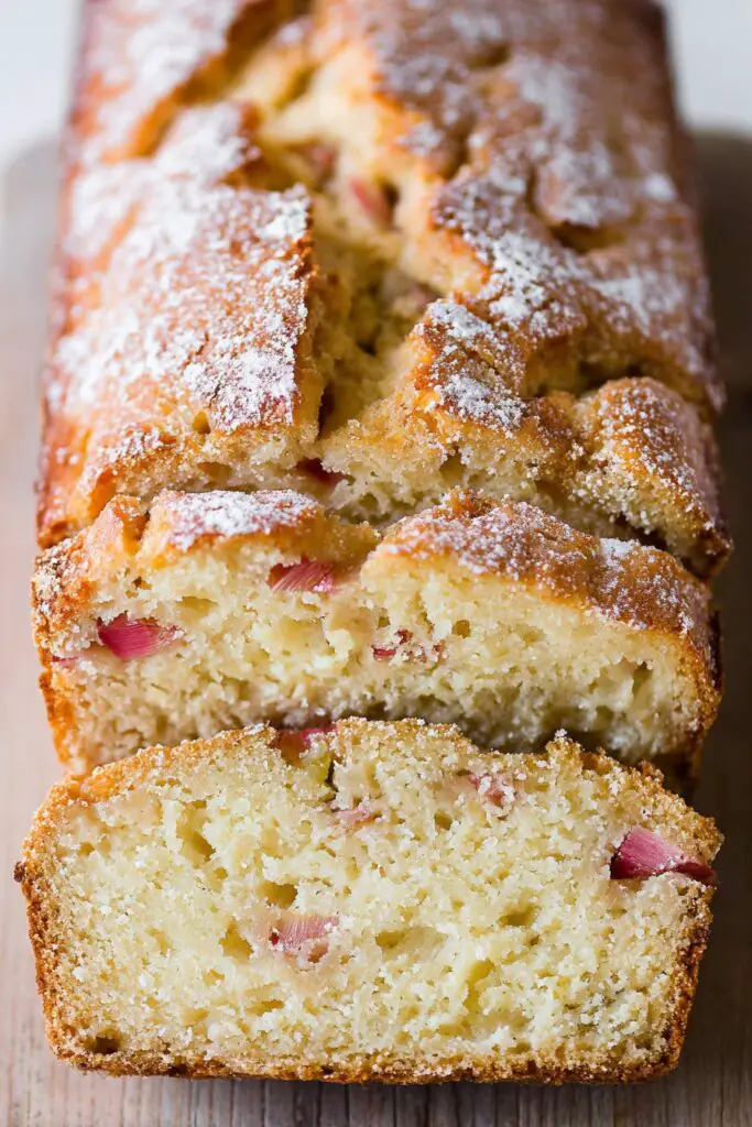 During spring gatherings or small holiday brunches, this fresh rhubarb loaf adds a bright, seasonal touch to the table.