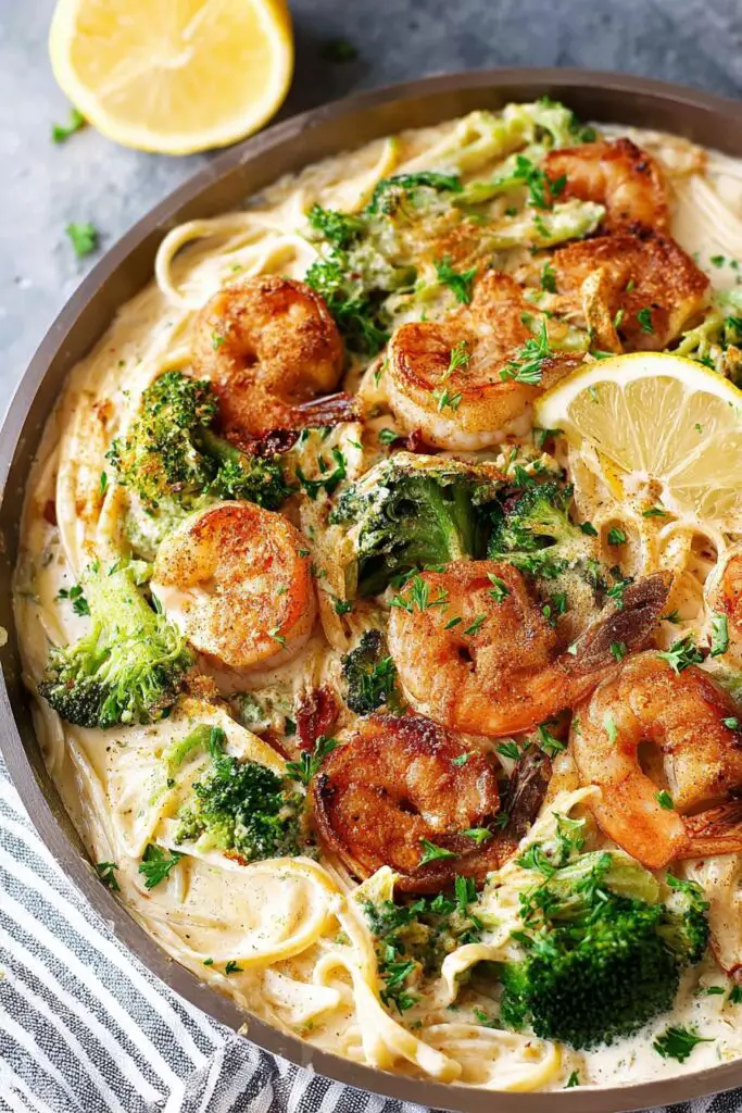 1. Classic Creamy Shrimp and Broccoli Alfredo