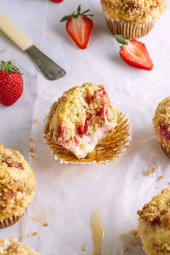 - Fill muffin cups, top with streusel, and bake 18–22 minutes. Let cool before serving.