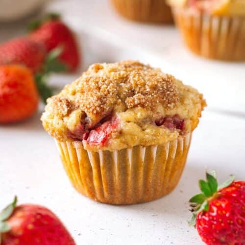 These strawberry rhubarb muffins are perfect alongside a hot cup of tea or coffee for a simple breakfast. They also pair nicely with scrambled eggs or a light omelet if you want to turn them into a more filling morning meal.