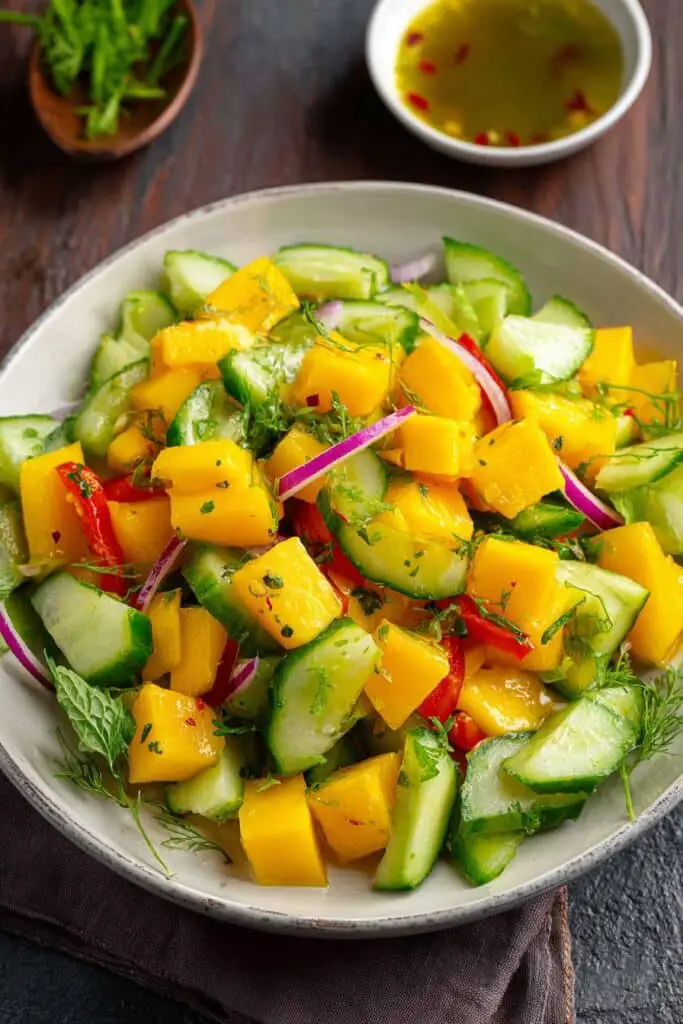 This mango cucumber salad is one of those summer side dishes for BBQ parties that feels super refreshing, especially on hot days. I usually make it when I want something light, and a little different from the usual cookout side dishes.