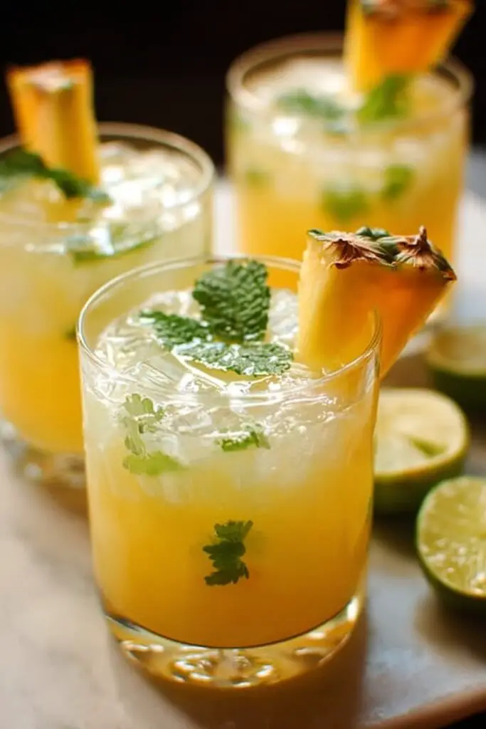I always like to end my Super Bowl beverages drink recipes list with something bright and refreshing and this Pineapple Ginger Punch does exactly that. It’s light, slightly spicy from the ginger, and perfect when you want a super bowl mocktail that still feels grown-up and party-worthy.