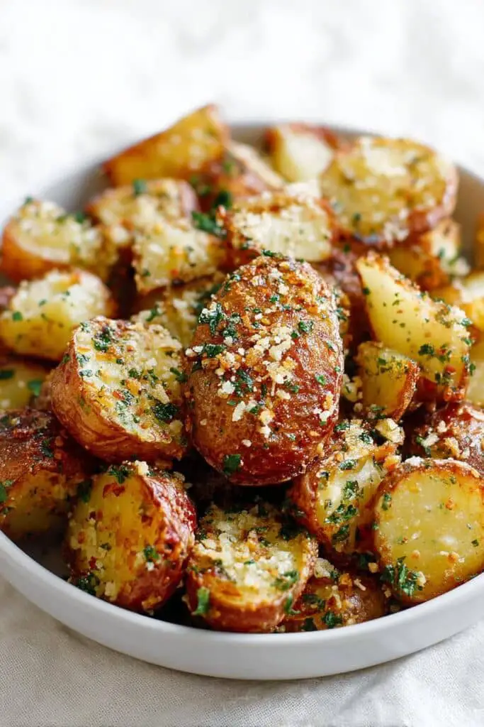 These roasted potatoes come out crispy on the outside and soft inside, making them a great potato side dish for Chicken Parmesan.