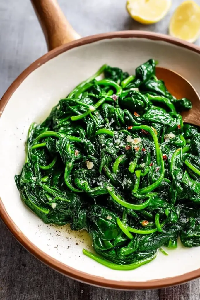 If you’re wondering what vegetable to serve with Chicken Parmesan, spinach is always a quick, nutritious go-to.