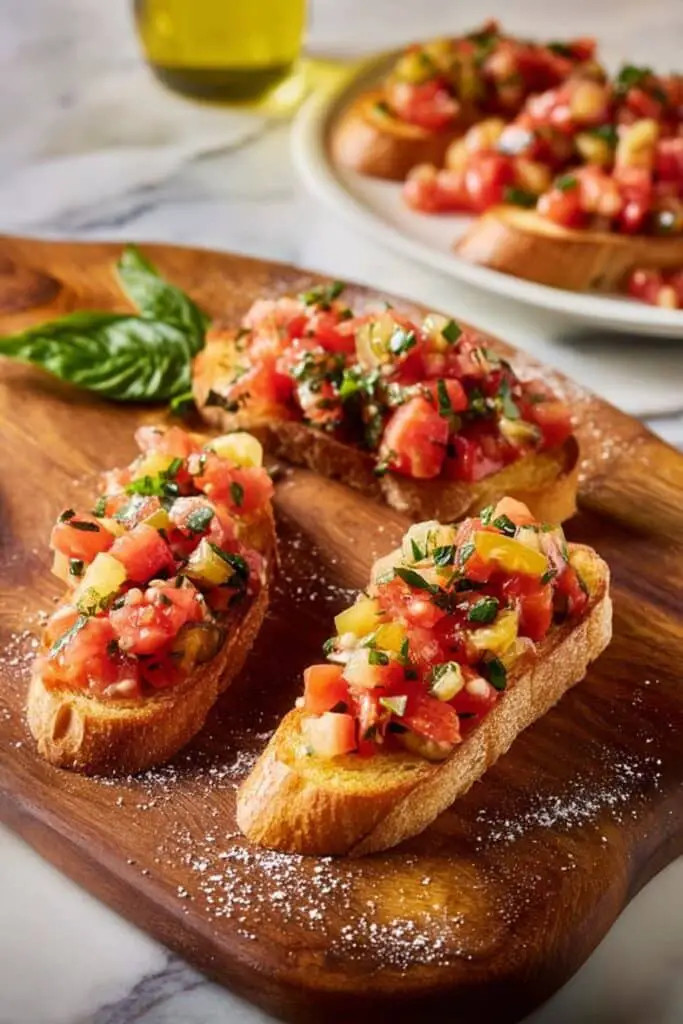 - Assemble: Spoon the tomato mixture onto each toasted bread slice. Add mozzarella if you want that melty, cheesy twist.